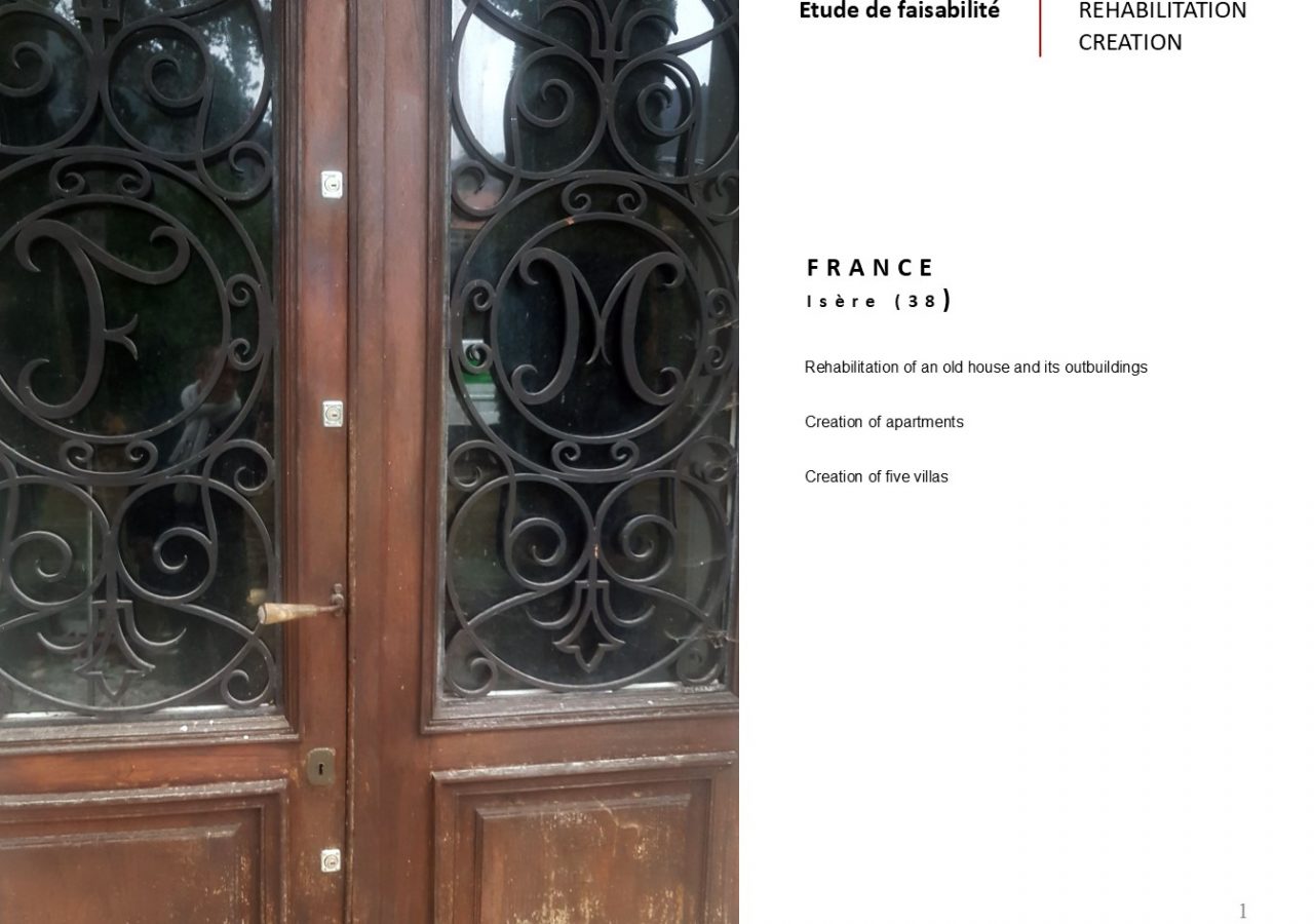 The project involves the rehabilitation of an old house with its outbuildings and the creation of new housing, including apartments and five individual villas. Context: heritage site in the heart of the Grésivaudan Valley, benefiting from a high-quality landscape setting and good accessibility. Program: Rehabilitation of the historic building to create modern apartments while preserving its authenticity. Construction of five contemporary villas, integrated into the site and offering a varied residential typology. Key Issues: Heritage enhancement and compliance with PLU requirements. Meeting local demand for diverse housing. Landscape integration and sustainable approach (architectural quality, comfort, environmental respect). Conclusion: The study confirms the feasibility of a balanced residential project that combines heritage preservation with contemporary creation. This development contributes to the attractiveness of Goncelin and to the architectural and landscape enhancement of the site.