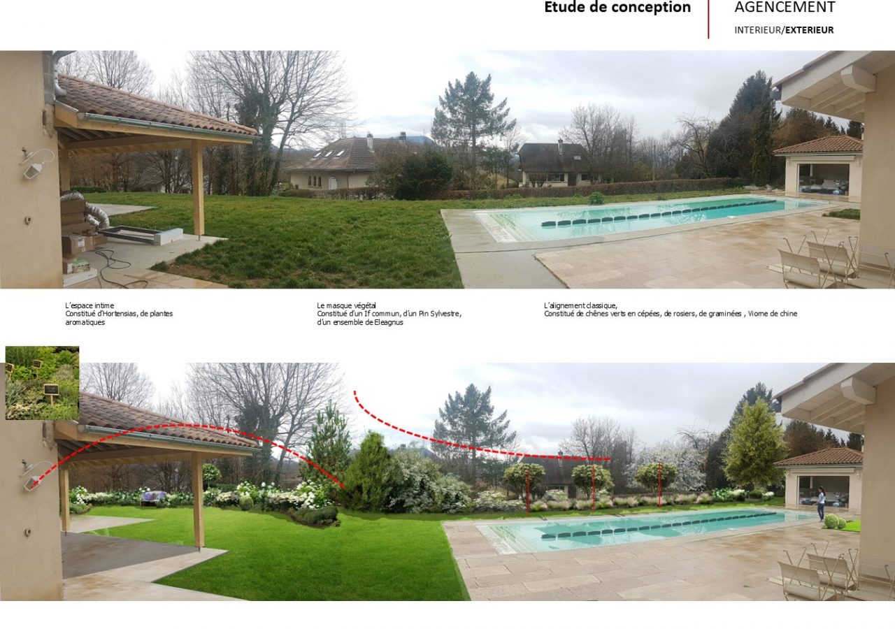 Le projet concerne la rénovation intérieure d’un chalet existant avec une réorganisation des espaces pour moderniser le lieu tout en conservant un style intemporel et élégant. L’étude met en avant : Réaménagement intérieur et mobilier : harmonisation des volumes, choix de mobilier et des tons de couleurs, travail des matériaux et des finitions (plâtres, textures, etc.) pour créer un environnement cohérent et raffiné. Aménagement paysager : conception d’un jardin spacieux permettant la création de différents espaces végétalisés offrant des contrastes esthétiques tout en maintenant une harmonie globale. Conclusion : L’étude confirme la faisabilité d’un projet qui allie modernité, élégance et fonctionnalité, valorisant à la fois les espaces intérieurs et extérieurs, pour offrir un cadre de vie confortable et esthétique.