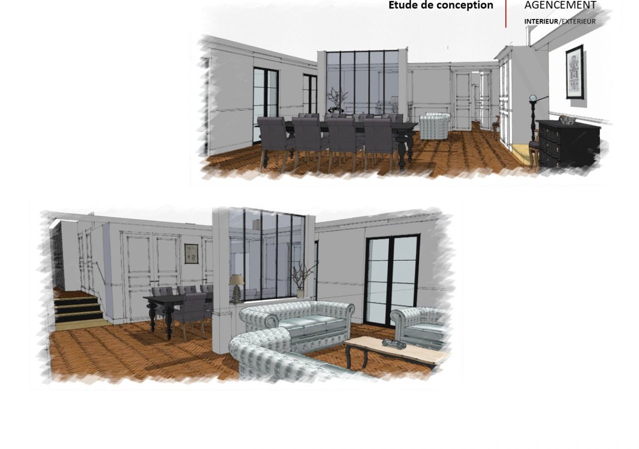 D8 – Resumen del estudio de viabilidad – Creación de un sector residencial (Isère) El proyecto se centra en la renovación interior de un chalet existente, con una reorganización de los espacios para modernizarlo manteniendo un estilo atemporal y elegante. El estudio destaca: Reorganización interior y mobiliario: armonización de los volúmenes, elección del mobiliario y de los tonos de color, trabajo de materiales y acabados (yesos, texturas, etc.) para crear un ambiente coherente y refinado. Diseño del jardín: creación de un jardín amplio que permite generar diferentes espacios vegetales, ofreciendo contrastes estéticos al tiempo que mantiene una armonía global. Conclusión: El estudio confirma la viabilidad de un proyecto que combina modernidad, elegancia y funcionalidad, valorizando tanto los espacios interiores como exteriores, y ofreciendo un entorno de vida cómodo y estético.