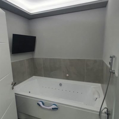 Ubicado en pleno centro de Andorra la Vieja, dentro de una clínica ya existente, la instalación de estas dos bañeras con propiedades terapéuticas forma parte de un reconocido centro de “belleza, cosmética y tratamientos personales”. La adaptación del espacio existente a esta actividad discreta e íntima se organiza de forma natural en torno a una zona de circulación curva que distribuye todas las salas de tratamiento. La sobriedad del lugar es fiel a la identidad de la clínica.
